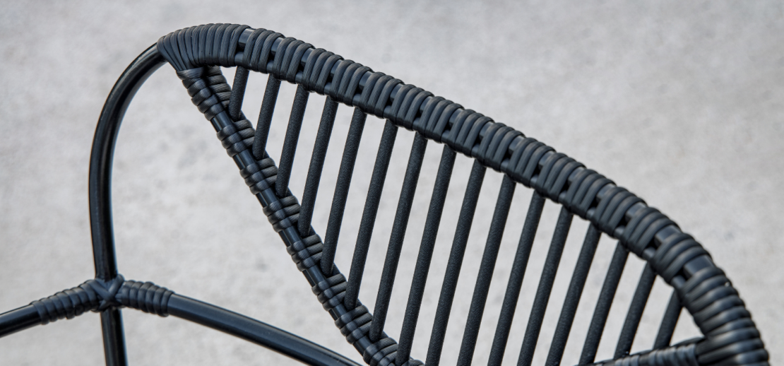 Cbdesign is one of the first outdoor furniture companies in the world to create an innovative form of synthetic that is still recognized from their products: the spoke profile. Born in 2011, this new synthetic profile becomes the starting point to reproduce the traditional natural cane furniture of the seventies: the 10mm thick spokes are curved, closed together, and fixed with clamps to the powder-finished aluminum frame. The results are collections with a retro flavor where the aluminum reminds of the bulkier cane and the synthetic of the thinner reeds.